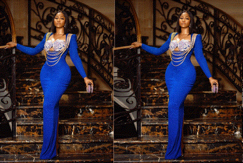 Now taking to the gram, she has dropped a series of snaps of herself and we can’t help but stare. The damsel was rocking a very sexy blue gown that showed off her super lovely slender figure and hourglass shape. See more dope snaps below;