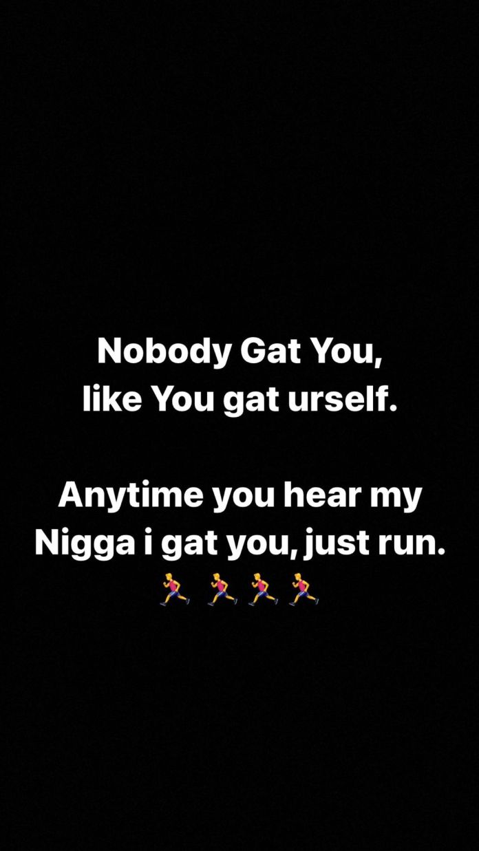 He revealed this on his Instastory where he explained further saying that nobody has your back but you. Depending on other people will only lead to disappointment, so the earlier you remove your trust from man, the better.