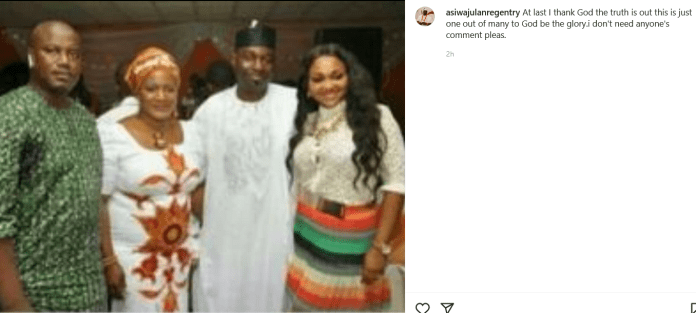 Minutes after she shared the post, some of her followers called her out for marrying Adeoti, claiming that he already has a wife.