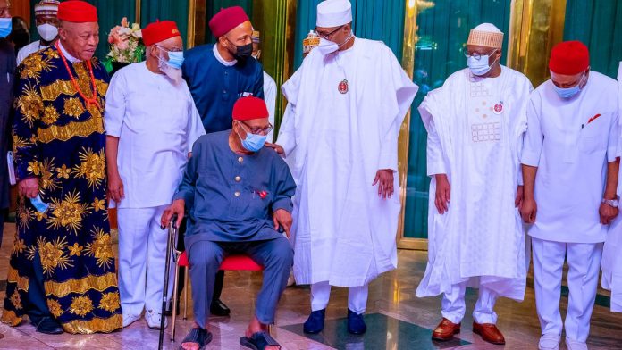 Chief Amaechi, a nonagenarian, led Igbo elders to Aso Rock Villa where they met President Muhammadu Buhari and asked for Kanu who has been held since June, to be freed.