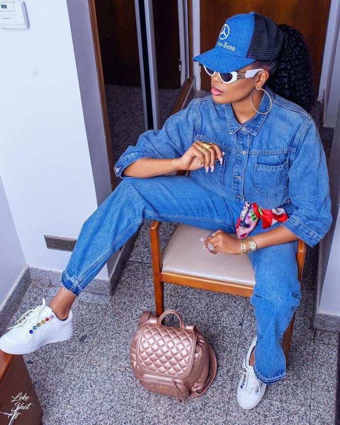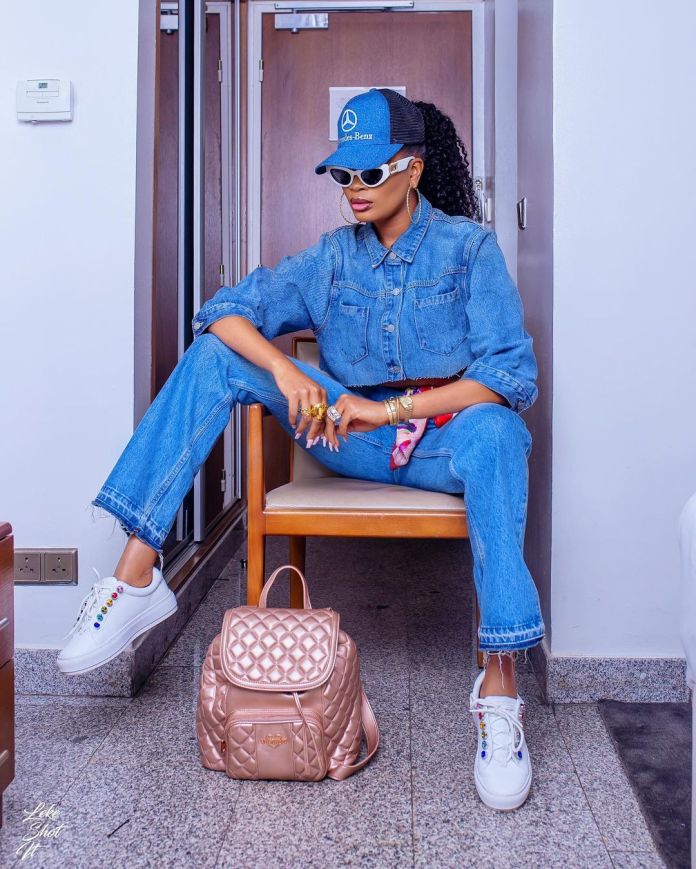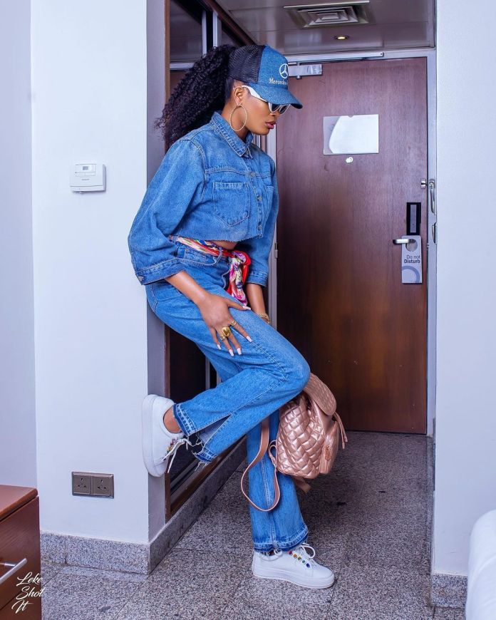 Time and time again, Bukunmi is always on point whenever she steps out and this outfit is no exception. Slaying in blue denim, no one has ever rocked it any better as this fashion guru makes denim look super cool, chic, and classy at the same time. See more sexy snaps below;