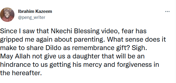 A video that has since gone viral surfaced online with Blessing seen giving out a plastic penis in a souvenir package.