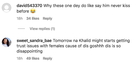 Now after the Saturday night party, Dotun was seen with Khalid’s love interest, as he kissed her without reserve. Fans have stated that Khalid should take heart because his ship with this particular female level up star is over. See comments below;