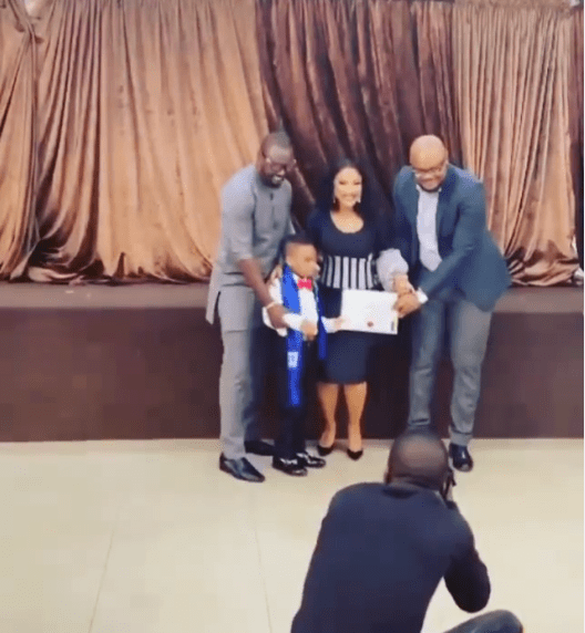 Excited and happy controversial Nollywood actress, Tonto Dikeh has in a video post showered her new man, Prince Kpokpogro with prayers and adulations after he had attended with her the graduation of her only son, King Andre from Nursery school to Primary.
