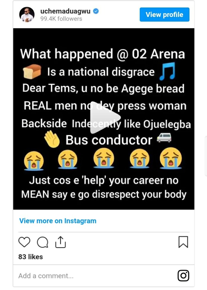 Uche Maduagwu reacting, rebuked Wizkid saying what happened at the O2 Arena is a national disgrace.
