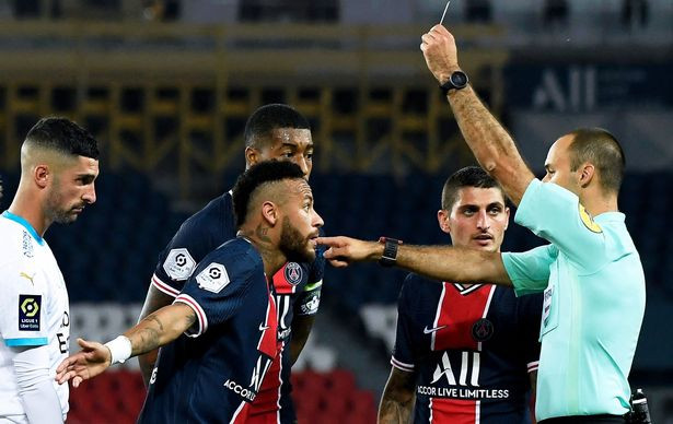 The Brazilian was among the five players that were given a card and sent off on Sunday after Marseille’s 1-0 defeat of PSG.