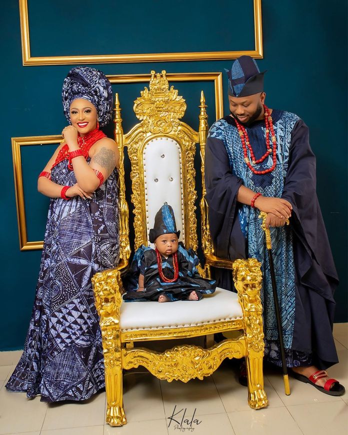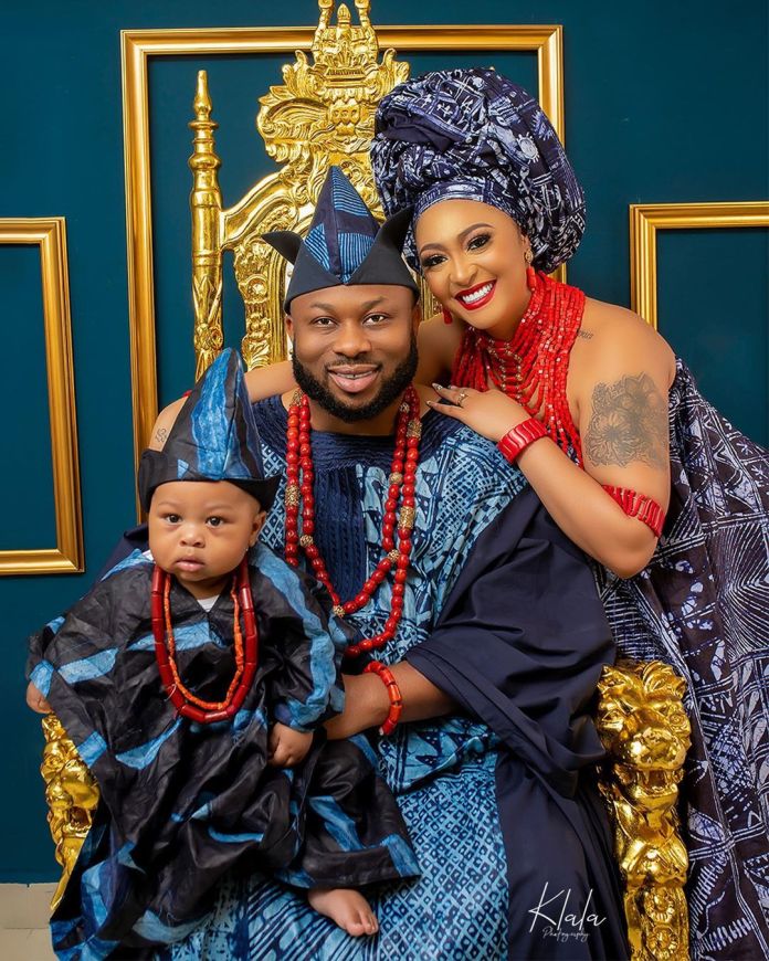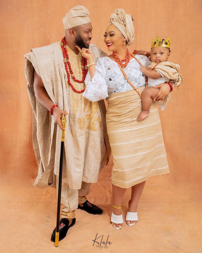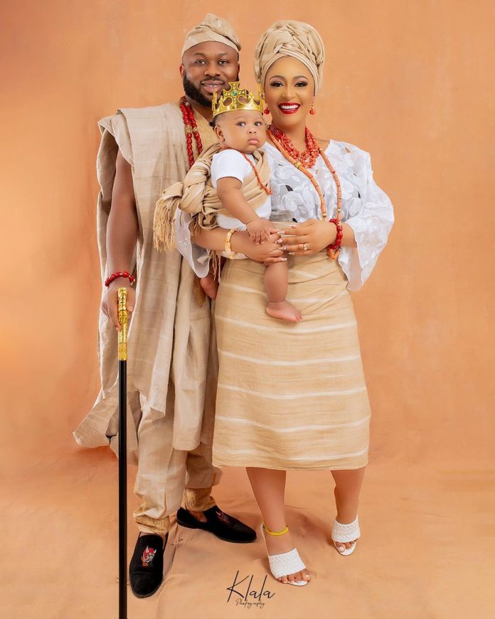 The couple took to their respective Instagram accounts to post photos of themselves and their son in traditional attire and they looked incredibly regal. The proud father showed off his beautiful family describing them as the Royals.