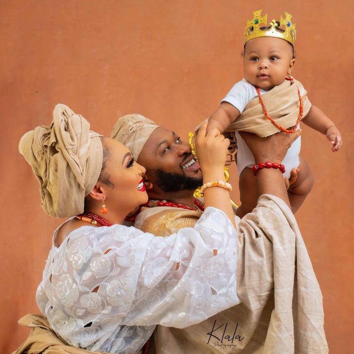 Olakunle Churchill and his lovely wife Rosy Meurer have finally shown off the face of their cute bundle of joy on social media for the first time after months of hiding his identity. The actress and her businessman husband shared stunning snaps of their son on Instagram alongside other heart-melting family photos.