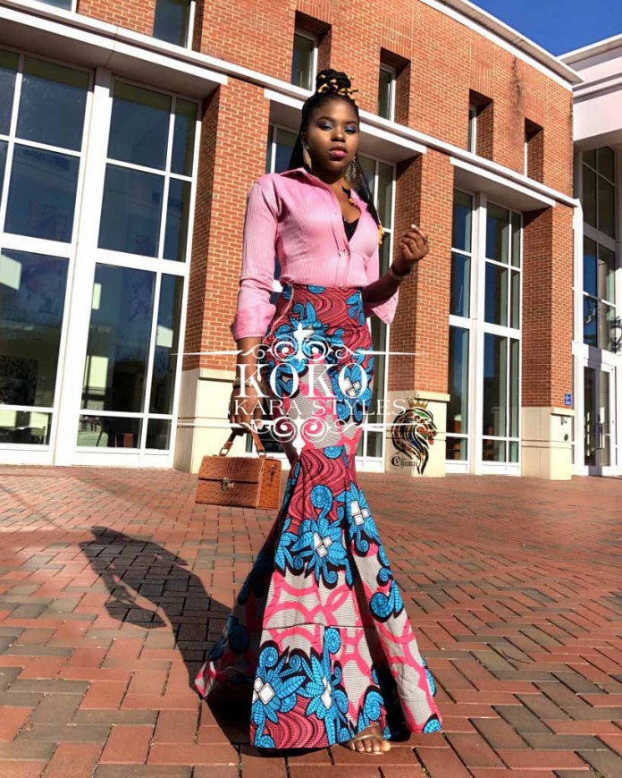 The free-flowing nature of this fashion style makes it suit different occasions. Even models and celebrities now rock high waist to events, with a matching crop top or another material altogether. See the beautiful palazzo Ankara styles below;