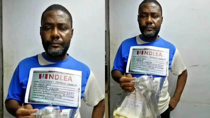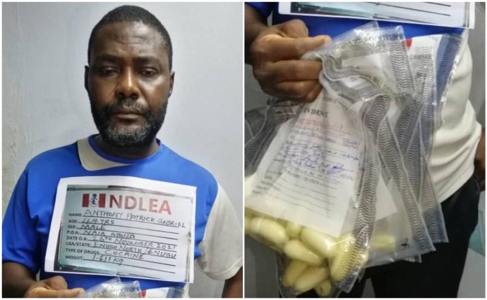 Gabriel Anthony Patrick, a 44-year-old father of three, has been arrested by operatives of the National Drug Law Enforcement Agency (NDLEA) at the Nnamdi Azikiwe International Airport, Abuja, for ingesting 96 pellets of cocaine, which he excreted in the custody of the agency.