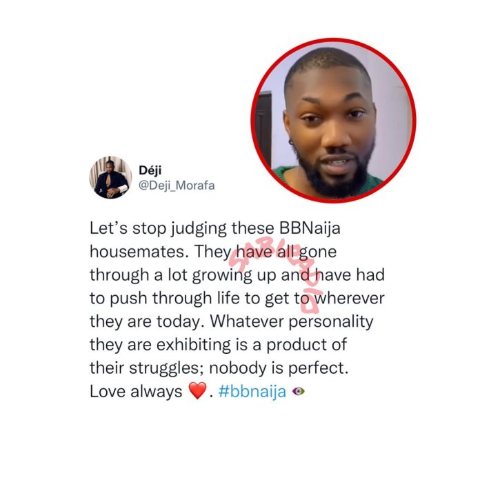 Deji, one of the fake housemates of this season, further stated that everyone has gone through a lot, and the fact that they can get to where they are today is commendable. He wrote let’s stop judging these BBNaija housemates.