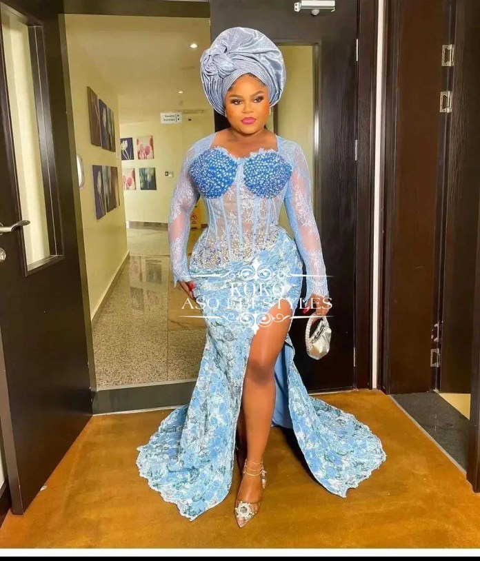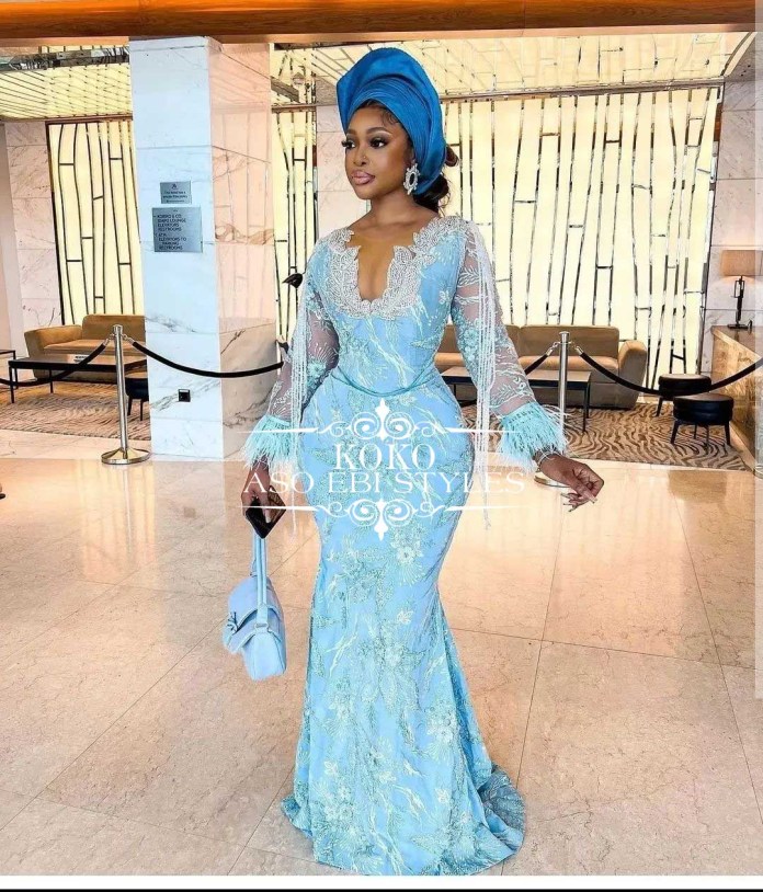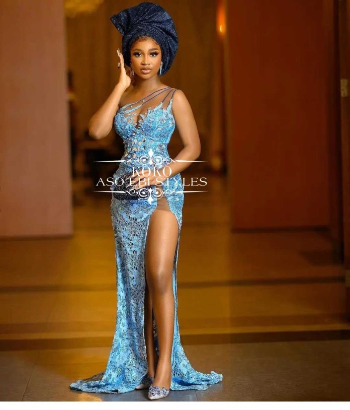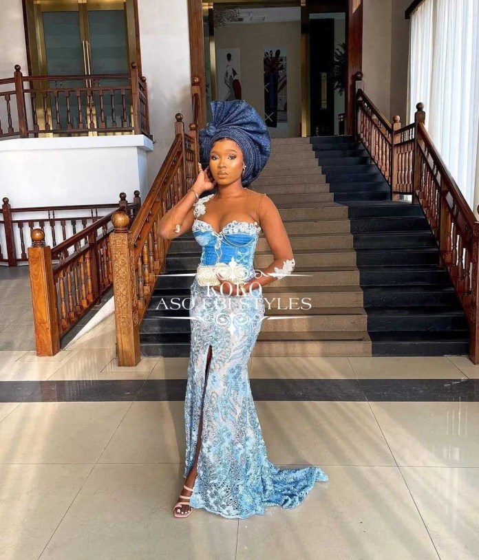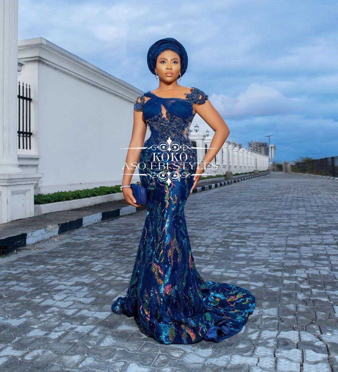The shade of blue does not matter as long as you have a style that emphasizes your sexy curves and highlights your charm like never before. So jump o these chic blue Aso Ebi styles and be the belle of the party;