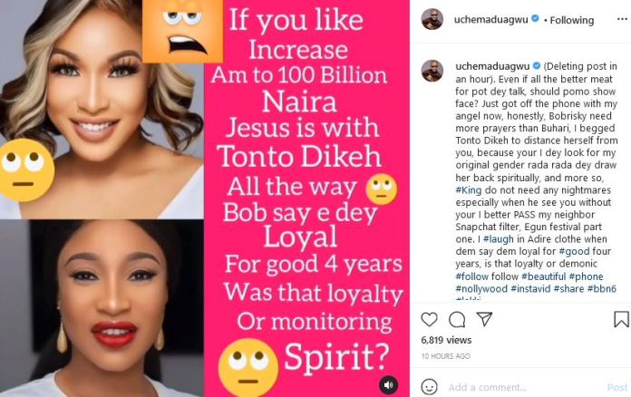 Controversial Nigerian actor, Uche Maduagwu has slammed Bobrisky after he dragged Tonto Dikeh following her breakup with Prince Joseph Kpokpogri.