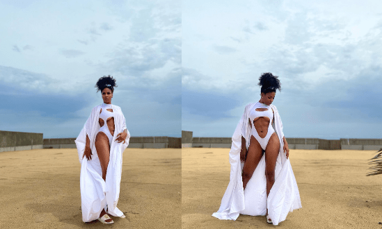 Now taking to the gram, she has dropped a series of snaps of herself by the beach and she is just breathtaking. The mother of two who doesn’t look it one bit was putting on a very pretty white swimwear that put her lovely figure on display.